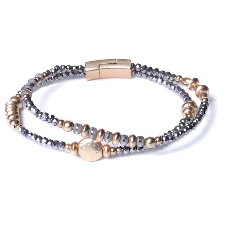 Biba armband facet en ronde en disckralen kleur donkergrijs met goudaccenten