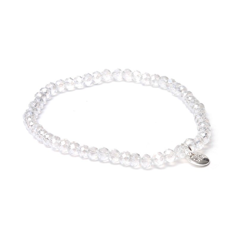 Trendy Biba facet armbandje in de kleur transparant white. De facet armbandjes zijn erg leuk om te combineren met bijvoorbeeld een leren armband. De facetkralen zijn ca. 4x3mm.