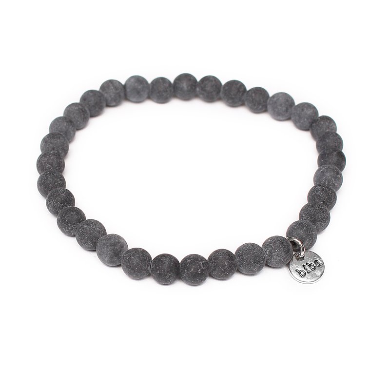 Trendy Biba natuurstenen kralenarmbandje antracite. De kralenarmbandjes zijn erg leuk om te combineren met bijvoorbeeld een leren armband. De kralen zijn ca. 6mm.