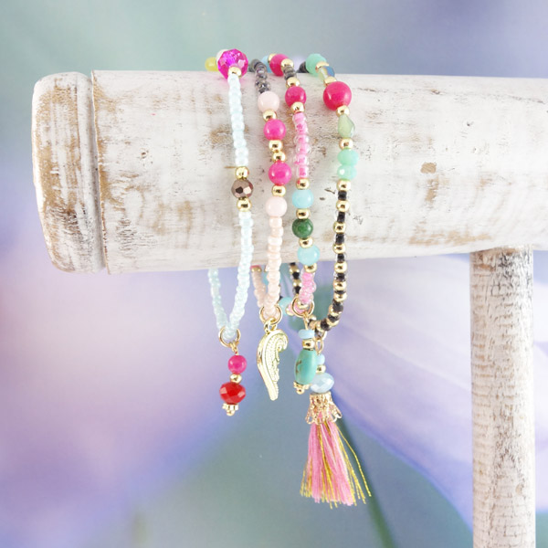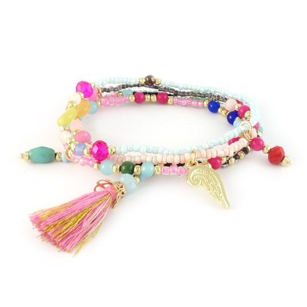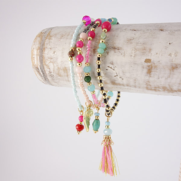 Deze prachtige en kleurrijke set armbandjes is een echte aanrader voor deze zomer. Met zeer veel leuke details en kleurencombinaties. In de armband is elastiek verwerkt waardoor het bijna om iedere pols past en ze zijn tevens nikkelvrij.