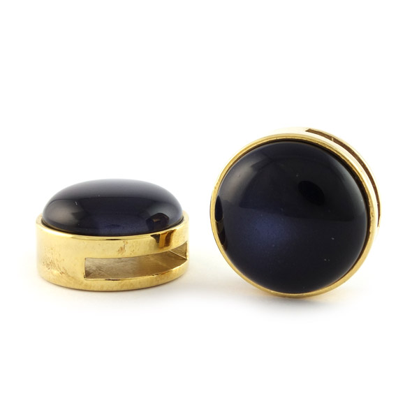 Slider goud met cabochon centroperla dark indigo blue 20mm Deze schuiver past op alle brede (15mm) leren Cuoio armbanden en het Ibiza lint. Prijs€ 3,95 Artikel momenteel uitverkocht Aantal