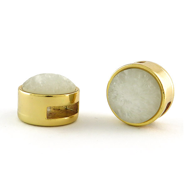 Slider goud met cabochon crushed ice silver shade Deze schuiver past op alle smalle (8 mm) leren Cuoio armbanden en het Ibiza lint. Prijs€ 3,95 Aantal