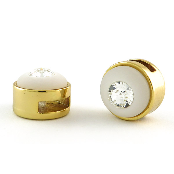 Slider goud met cabochon mat puntsteen bianco wit crystal