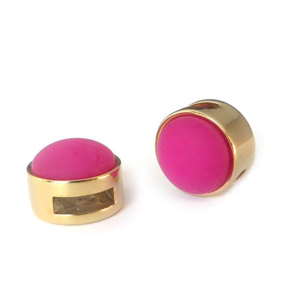 Slider goud met cabochon matt fuchsia