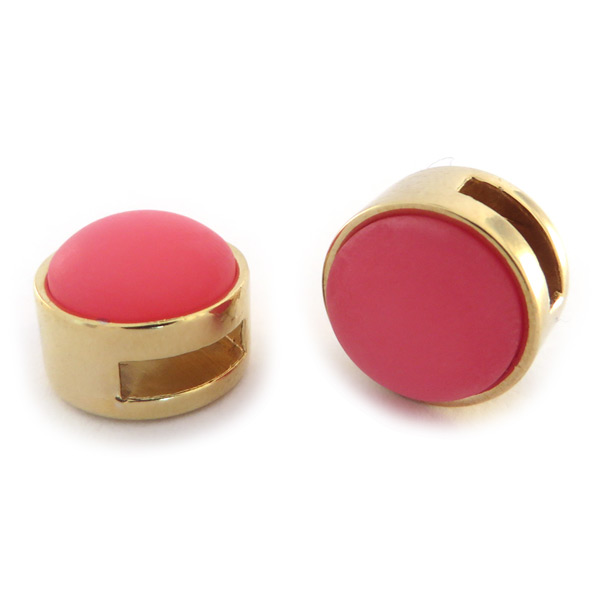 Slider goud met cabochon matt idian pink Deze goudkleurige slider past op alle smalle (8 mm) leren armbanden van Cuoio en de Ibiza armbandjes. Prijs€ 2,95 Aantal