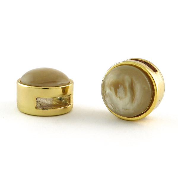 Slider goud met cabochon pearl shine beige bruin Deze schuiver past op alle smalle (8 mm) leren Cuoio armbanden en het Ibiza lint. Prijs€ 2,95 Aantal