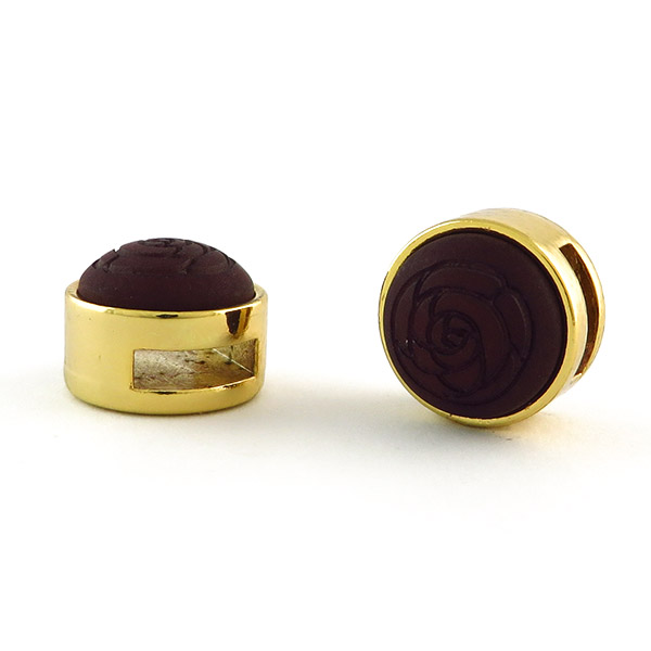 Slider goud met cabochon roos mat siam Deze schuiver past op alle smalle (8 mm) leren Cuoio armbanden en het Ibiza lint. Prijs€ 3,95 Aantal