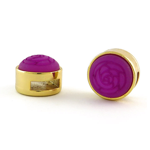 Slider goud met cabochon roos purple orchid Deze schuiver past op alle smalle (8 mm) leren Cuoio armbanden en het Ibiza lint. Prijs€ 3,95 Aantal
