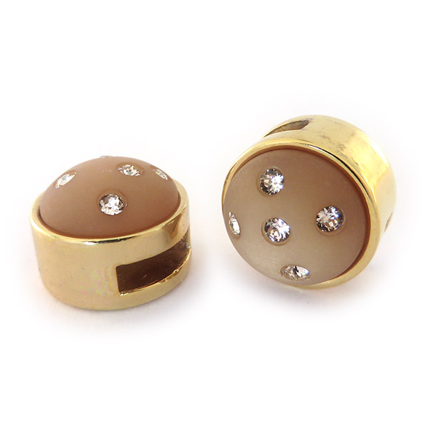 Slider goud met cabochon soft greige Swarovski Deze slider past op alle smalle (8 mm) leren armbanden van Cuoio en de Ibiza armbandjes. Prijs€ 5,50 Aantal