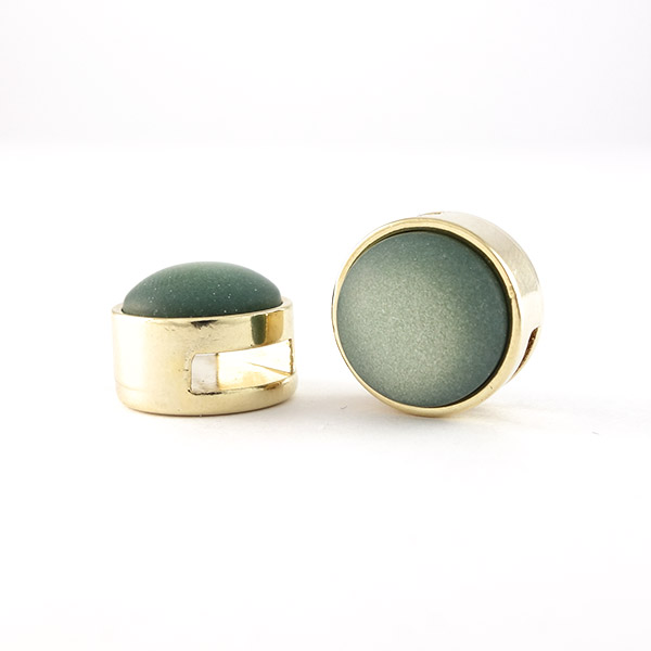 Slider goud met cabochon soft tone mat greenish beige Deze schuiver past op alle smalle (8 mm) leren Cuoio armbanden en het Ibiza lint. Prijs€ 2,95 Aantal