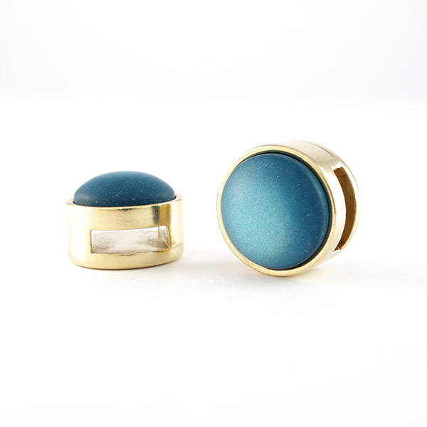 Slider goud met cabochon soft tone mat light emerald blue zircon
