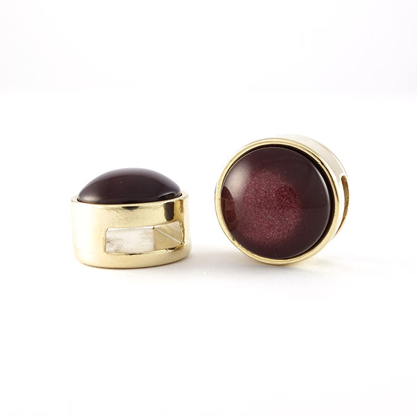Slider goud met cabochon soft tone shiny aubergine red Deze schuiver past op alle smalle (8 mm) leren Cuoio armbanden en het Ibiza lint. Prijs€ 2,95 Aantal