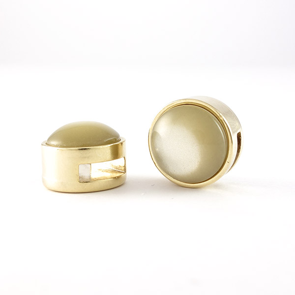 Slider goud met cabochon soft tone shiny greenish beige Deze schuiver past op alle smalle (8 mm) leren Cuoio armbanden en het Ibiza lint. Prijs€ 2,95 Aantal