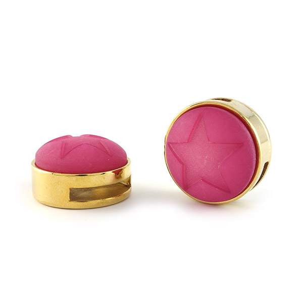 Slider goud met cabochon ster mat rose pink 20mm Deze schuiver past op alle brede (15 mm) leren Cuoio armbanden. Prijs€ 4,95 Artikel momenteel uitverkocht Aantal