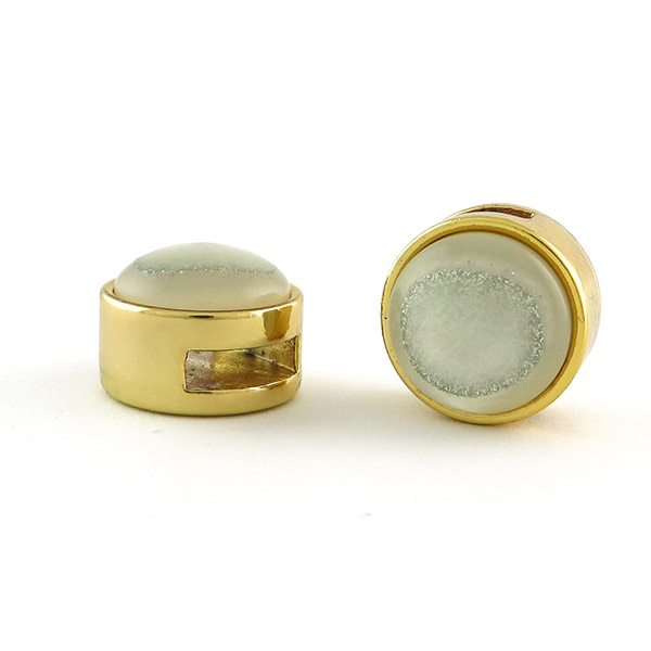 Deze schuiver past op alle smalle (8 mm) leren Cuoio armbanden en het Ibiza lint. De structuur van deze cabochon is uniek en kan daarom afwijken van de foto.