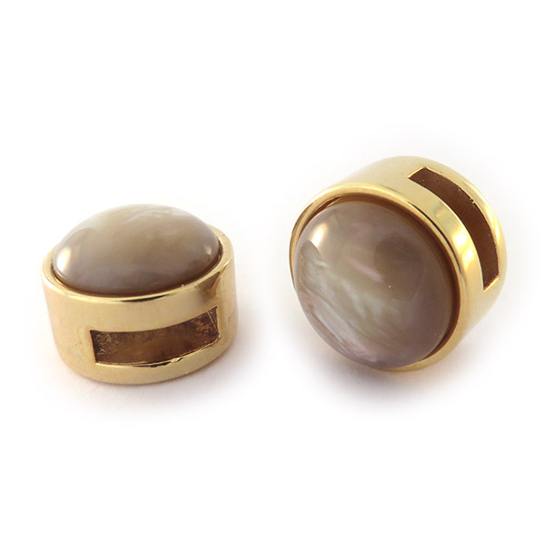 Slider goud met cabochon waikiki shiny cognac brown Deze slider past op alle smalle (8 mm) leren armbanden van Cuoio en de Ibiza armbandjes. De structuur van deze cabochon is uniek en kan daarom afwijken van de foto. Prijs€ 2,95 Aantal