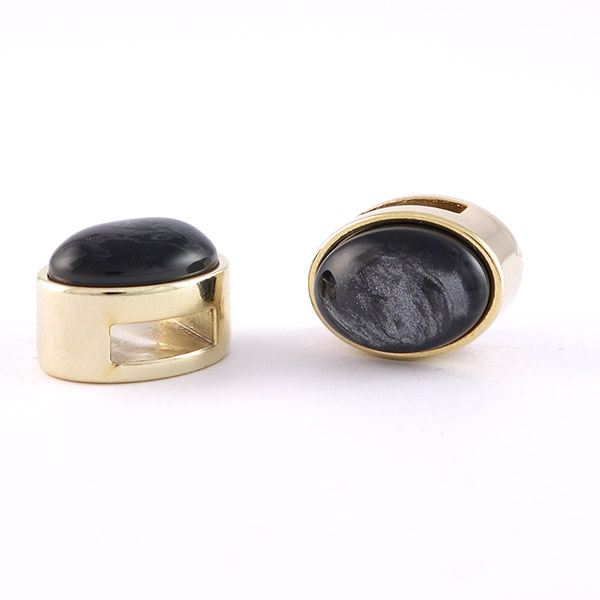 Home / Cuoio armbanden / Cuoio schuivers / Ovale schuivers voor smalle armband / Slider ovaal goud met cabochon antracite grey pearl shine