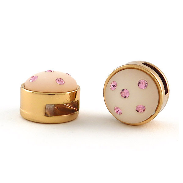 Slider rose met cabochon 5 Swarovski steentjes soft pink Deze schuiver past op alle smalle (8 mm) leren Cuoio armbanden en het Ibiza lint. Prijs€ 5,95 Artikel momenteel uitverkocht Aantal