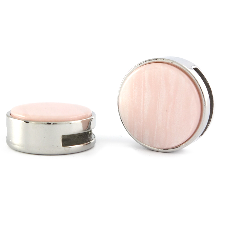 Deze zilverkleurige slider met cabochon dust lichtroze past op alle brede (15 mm) leren armbanden.