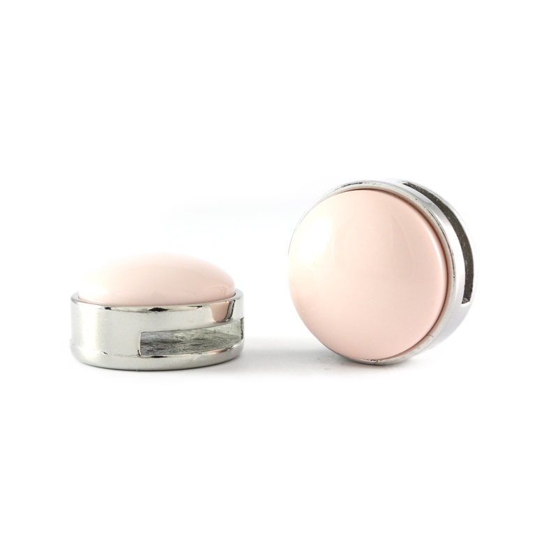 Deze zilverkleurige slider met cabochon soft light roze past op alle brede (15 mm) leren armbanden.