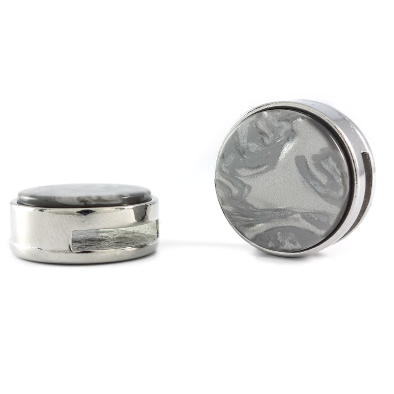 Deze zilverkleurige slider met cabochon jais grey  past op alle brede (15 mm) leren armbanden.