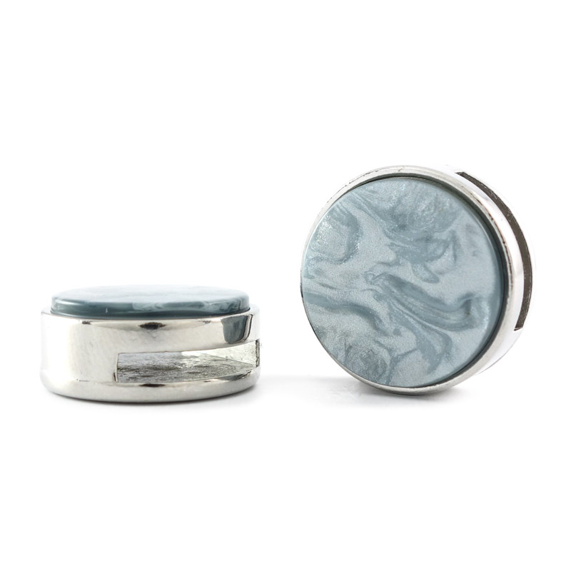 Deze zilverkleurige slider met cabochon jais sky blue past op alle brede (15 mm) leren armbanden.