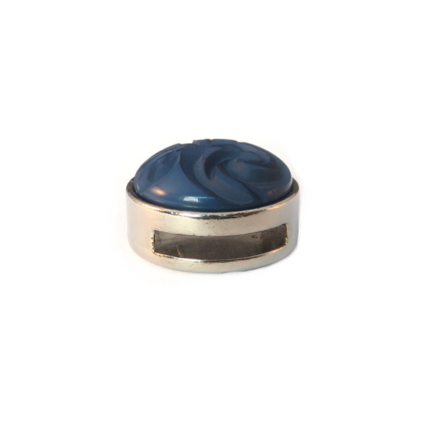 Slider zilver met cabochon carved rose shiny denim blue 20mm