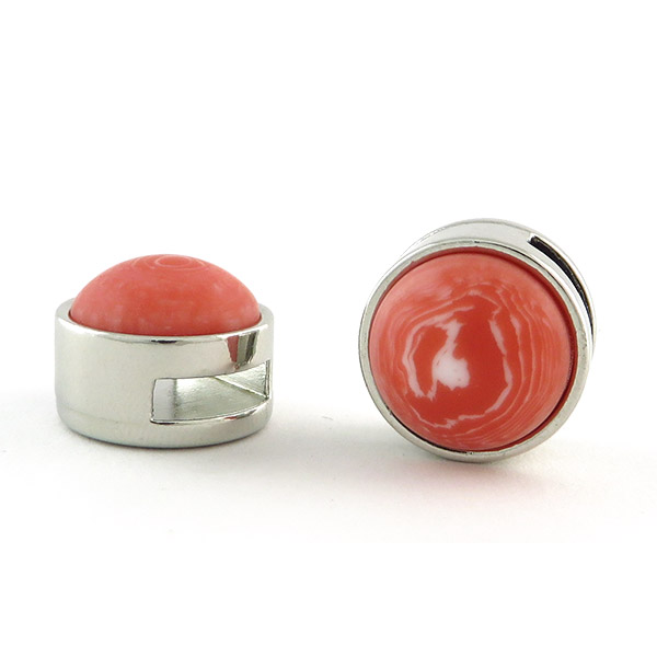 Slider zilver met cabochon koraal matt pink Deze schuiver past op alle smalle (8 mm) leren Cuoio armbanden en het Ibiza lint. De structuur van deze cabochon is uniek en kan daarom licht afwijken van de foto. Prijs€ 1,95 Artikel momenteel uitverkocht Aantal