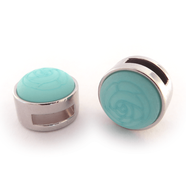 Slider zilver met cabochon roos light turquoise