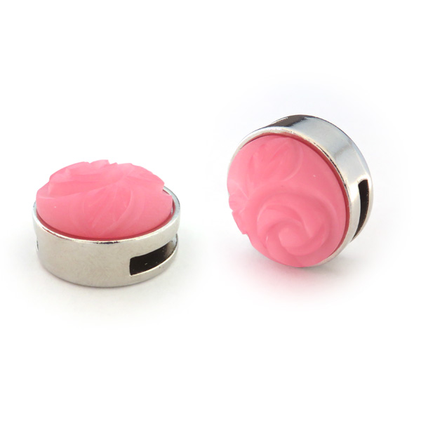 Cuoio slider zilver met cabochon soft pink matt rose carved