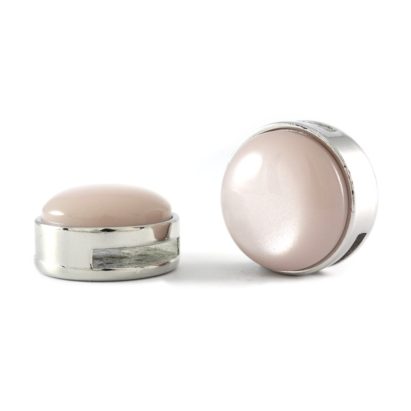 Deze zilverkleurige slider met cabochon shiny light pink past op alle brede (15 mm) leren armbanden.