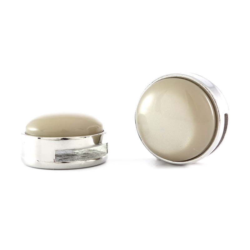 Deze zilverkleurige slider met cabochon soft shiny beige past op alle brede (15 mm) leren armbanden.