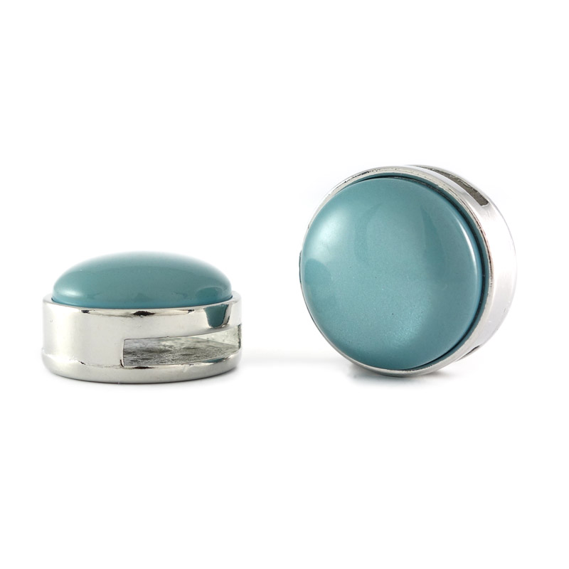 Slider zilver soft shiny lagoon blue 20mm Deze zilverkleurige slider met cabochon soft shiny lagoon blue past op alle brede (15 mm) leren armbanden. Prijs€ 2,95 Artikel momenteel uitverkocht Aantal